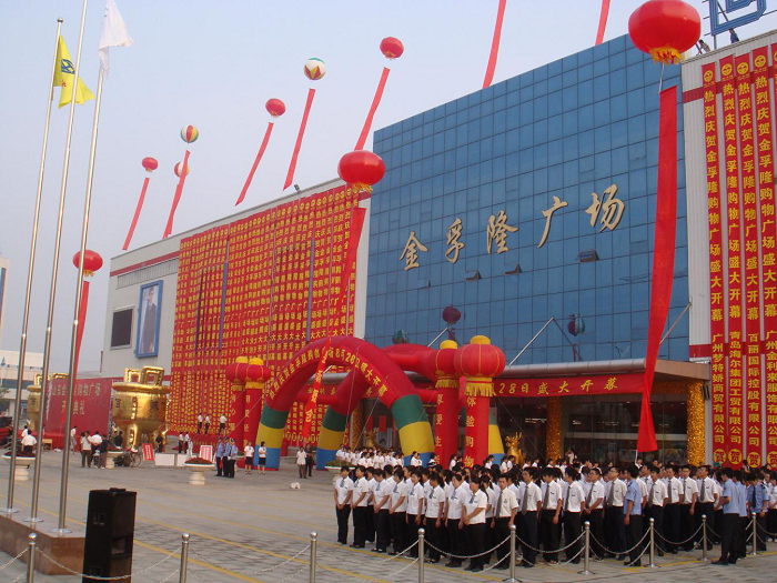 金孚隆超市购物广场于2008年8月28日盛大开业,是高密第一家大型百货店,它的建成引领了高密本土高端精品百货的新潮流,在历史的舞台上画上了浓重的一笔。位于振兴街与利群路交叉路口,门前广场有大型停车场,卖场共有四层,一层为生活超市、黄金珠宝、名表等精品、二楼为女装、女鞋、儿童乐园、三楼为男装、男鞋、四楼为影院、国美电器,为消费者带来全新的购物体验。