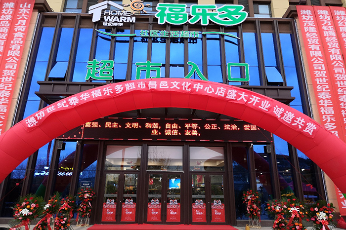 潍坊泰华城店作为福乐多超市的旗舰店,于2007年1月开业,位于潍坊泰华城新天地负一层,面积8000余平方米,毗邻市内最大的泰华城地下停车场,定位于打造山东第一MALL内的精品生活超市。