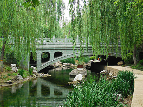 张面河全线各景点布有供集体活动的太极广场、下沉式观演广场,有供情侣、老人、小孩休闲娱乐的小游园、情人园、长寿园和童趣园,还有别致、舒适的休闲花架和休息凳。各桥头、节点精心构思,气派壮观,桥头塑石错落耸立,俨然如真。场地内有缓坡小径和石砌步行台阶,沿岸有机动车道与人行道相环绕。河道依地势而起伏,因环境而错落,两岸绿树成荫,鲜花满地,曲径通幽,廊柱叠水。在灯光的运用上充分体现了艺术效果,与景石绿化相协调,颜色、亮度、位置力求最佳。在水的运用上也别具特色,高处雕塑、柱廊的叠水,顺势而下,再通过铺有天然石块驳岸的小溪顺流而下,形成了变化丰富的水景,为小孩的嬉戏,成人的亲水创造了良好的环境。