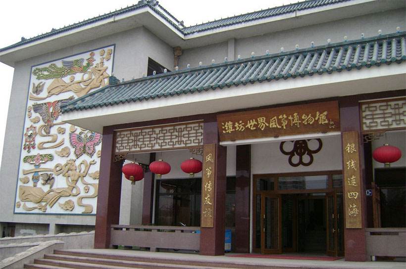 潍坊世界风筝博物馆是中国第一座大型风筝博物馆,建筑面积8100平方米,建筑造型选取了潍坊龙头蜈蚣风筝的特点,屋脊是一条完整的组合陶瓷巨龙,屋顶用孔雀兰琉璃瓦铺成,似蛟龙遨游长空伏而又起,设计风格在国内独树一帜,是“世界风筝都” 展览以1000余只筒式、板式、硬翅、软翅、串式五大类风筝精品以及300余件翔实的风筝文物资料为主,较全面、客观地体现了潍坊风筝所独有的题材广泛、造型优美、绘画精细、色彩艳丽的风格;介绍了构思大方、造型夸张、色彩对比鲜明、注重飞翔性能、研究价值较高的外国风筝;重现了历届潍坊国际风筝会的盛况;展示了在潍坊市委、市政府“文化搭台,经济唱戏”这一决策指导下各行各业发生的巨大变化。1988年各国风筝组织推举潍坊为“世界风筝都”,1989年“国际风筝联合会”成立。风筝博物馆每年接待国内外观众3万余人次,已成为潍坊市对外开放的一个重要窗口。