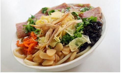 삶은 닭고기와 오리고기의 수프에 흐르 국수를 넣고 함께 삶은 다음에 원래 수프, 닭고기와 오리 고기, 마른 돼지 고기, 달콤한 장마늘, 소금에 절인 연엽채, 소금에 절인 부추, 고추기름 등을 넣어 먹는다. 면이 유연하고 강하며 육질이 풍부하며 수프가 부드럽고 특별한 맛을 내는 것은 흐르국수의 특징이다.