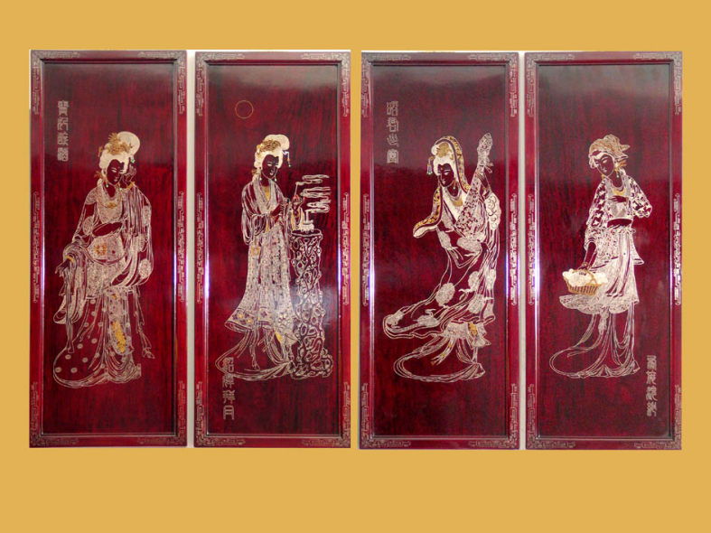 칠기 장식 공예 기술(웨이팡 은장식 칠기 공예 기술)은 귀한 홍목, 천연칠, 금은실을 주요 원료로 하여 홍목 가구에 정교하게 조각하고 금은실로 장식하는 독특한 공예 기술이다. 청(清)나라 도광(道光) 연간에 구리 장신구 예술가 요학건(姚學乾)은 금석학자 진개기(陳介祺)의 유물 복원 및 보존 개선 과정에서 탁본표구 예술가 전우범(田雨帆)과 함께 역대의 아름다운 유물을 살펴보고, 한(漢)나라 시대의 금은기를 참조하여 새로운 것을 만들어, 목재 기구에 금은실을 끼워 넣는 기술을 창조했다. 웨이팡 홍목 은장식의 전통 수공예 기술은 창조 이후 거의 200년이 지나서, 많은 전승자들의 노력으로 이 전통 수공예 기술을 점차 완성시켰다. 2011년 칠기 장식 공예 기술(웨이팡 은장식 칠기 공예 기술)은 제3차 국가급 무형문화재 대표적 프로젝트 목록에 등재됐다.