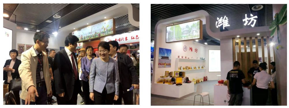 웨이팡시 문화 및 여행국은 박람회 주회장에 72 제곱미터의 특별 전시장을 설치하고 무형 유산 몰, 안 구성천 음료수, 청연재 등의 기업과 장운샹, 양홍위, 두길청 등 민간 예술가, 무형 문화유산 상속자, 그리고 공예미술대사들이 박람회에 참가하도록 조직했다. 예술과 공예의 거장과 함께 전시. 박람회에는 연, 세화, 홍나무은선상감칠기, 흑도자기, 종이 자르기, 이불, 밀짚 가방, 짚 그림, 제성 봄 차, 우엉 시리즈 제품과 같은 50 개 이상의 문화창의 제품과 관광제품이 전시되었다.