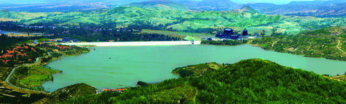 水库工程等别为Ⅲ等,主要建筑物级别为3级。枢纽工程由大坝、放水洞、溢洪道(闸)等组成。大坝主坝为粘土心墙砂壳坝,坝顶高程251.10米,坝顶轴线长度620米,坝顶宽度8米,最大坝高27米;副坝为均质坝,坝顶高程251.30米,最大坝高10米,坝顶长度120米;溢洪道进口底高程240.50米,溢洪闸为2孔钢平板闸门、每孔净宽7米、高5米,最大泄量400立方米/秒;放水洞为1.5*1.5米的钢筋混凝土有压箱涵,闸门形式为一孔钢平板门,设计流量11.0立方米/秒。