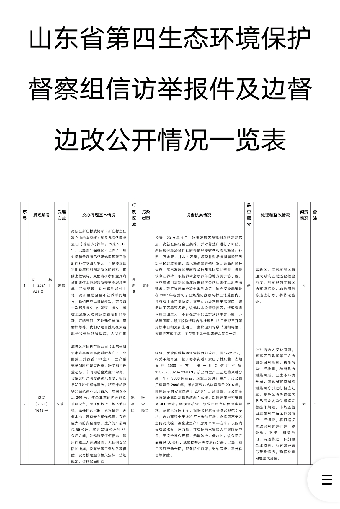 山东省第四生态环境保护督察组信访举报件及边督边改公开情况(第二十二批)