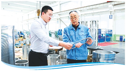 在山东鹤见红旗环境科技有限公司,滨海区中外合作产业园服务企业专员正在了解企业发展情况。