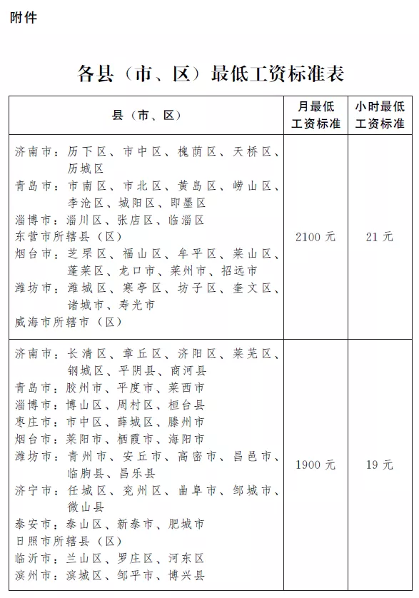 附件:各县(市、区)最低工资标准表